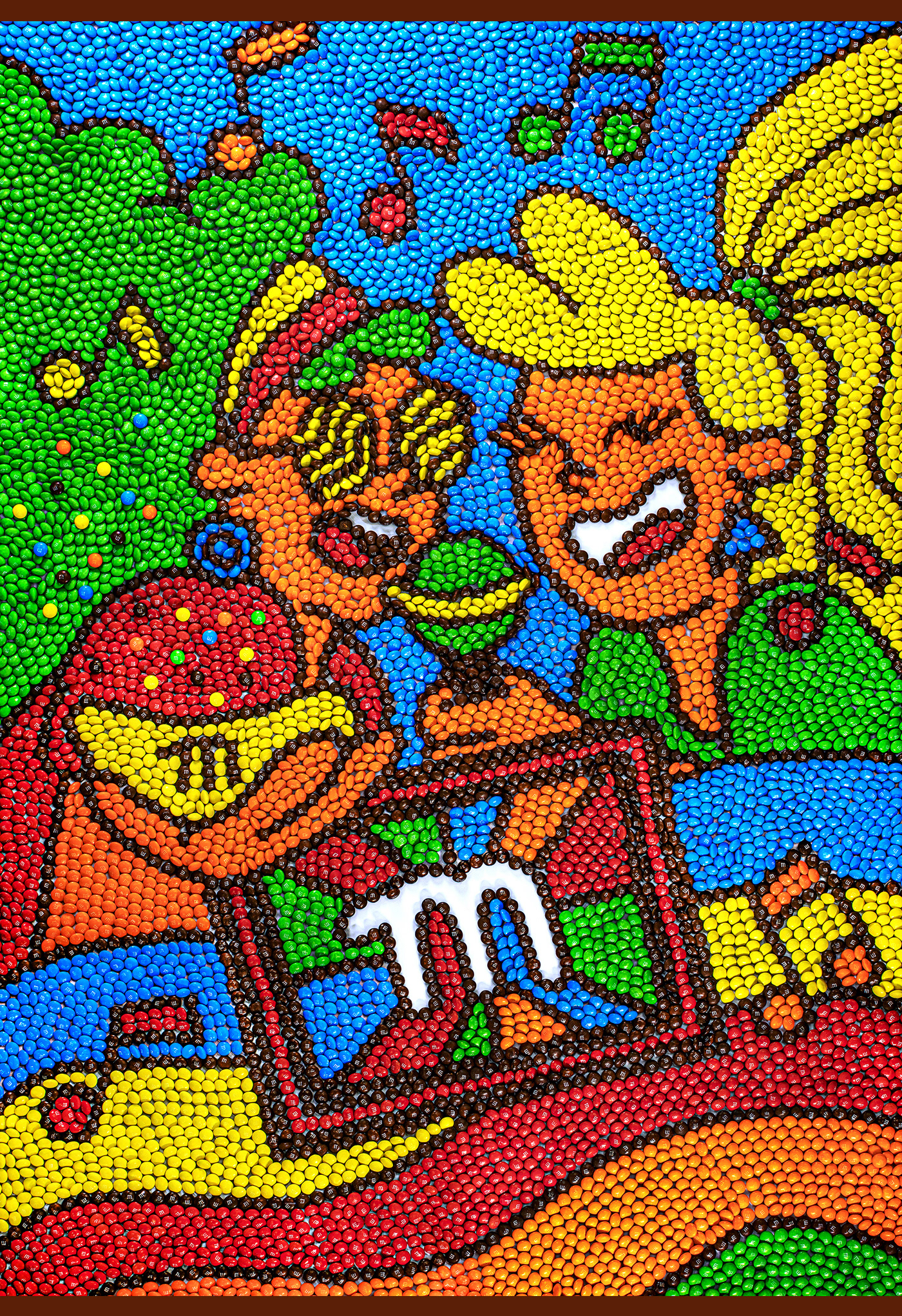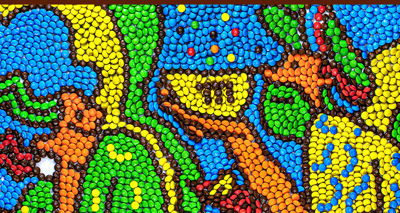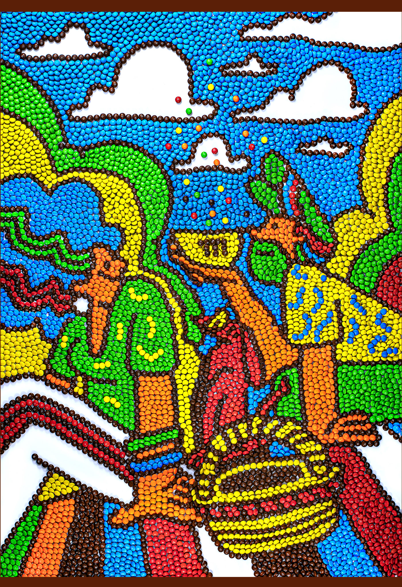 That's when we were invited to create three artworks made entirely of M&M'S®, showing that art can also be sweet. More than 37,000 lentils (as these beautiful mini chocolates are called) were used, and besides bravely resisting and not eating everything, we proved that they really don't melt in your hands.