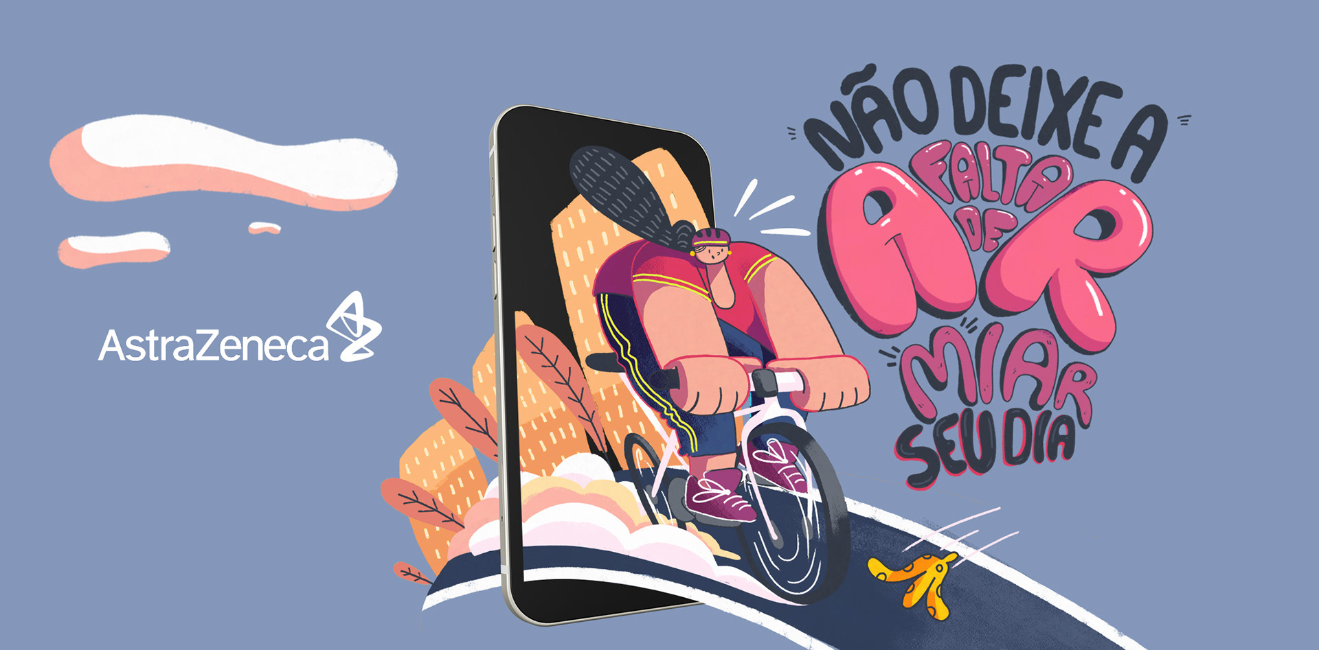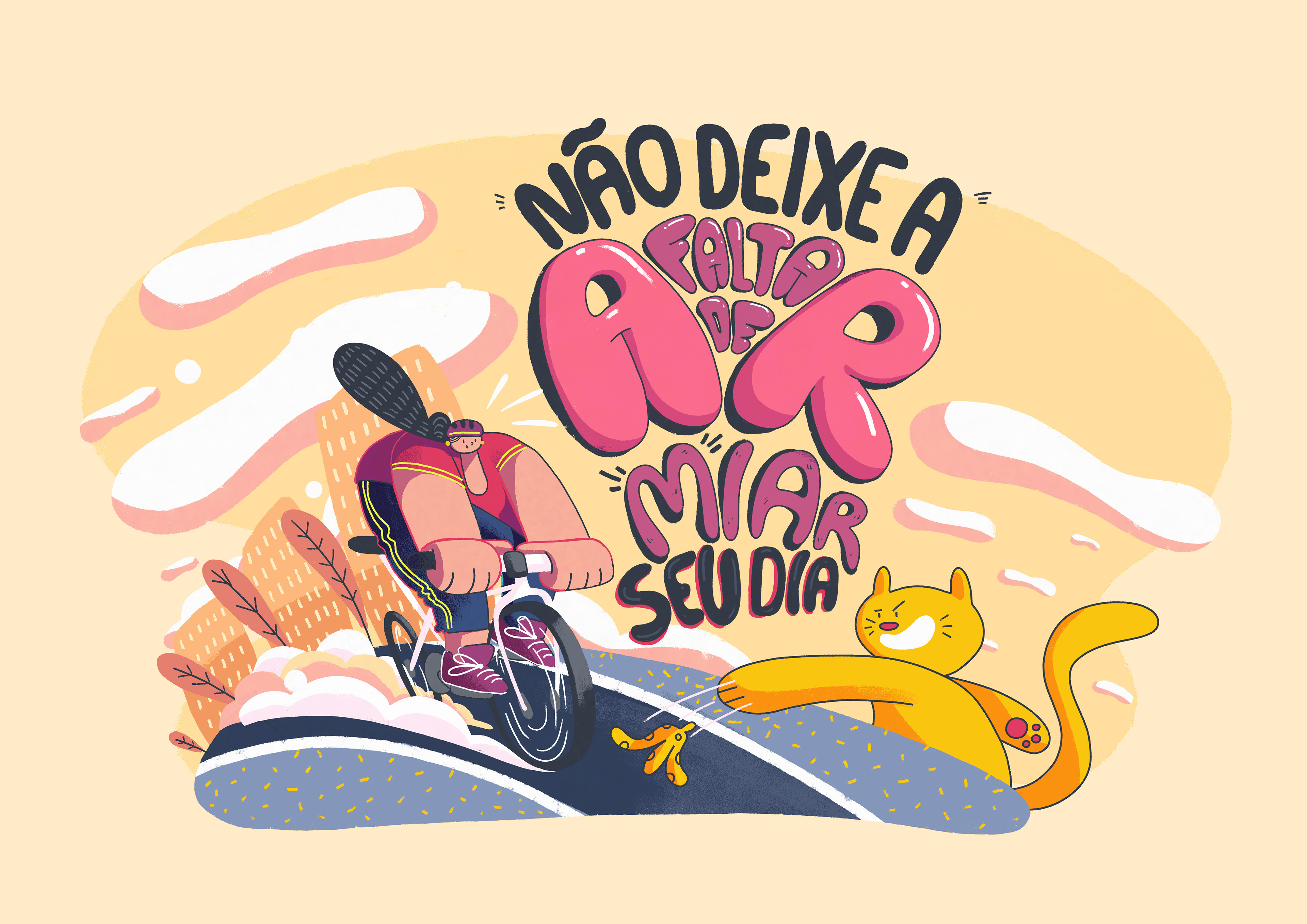 With the concept "Don't let shortness of breath ruin you day" the cat, our main character does all he can to ruin people's day. The idea behind it is the idiomatic word game of 'miar' which means both 'meow' and 'ruin' in portuguese.