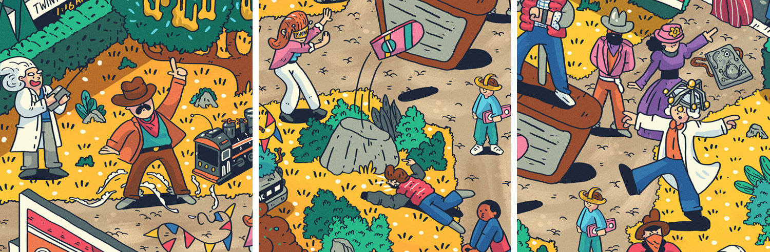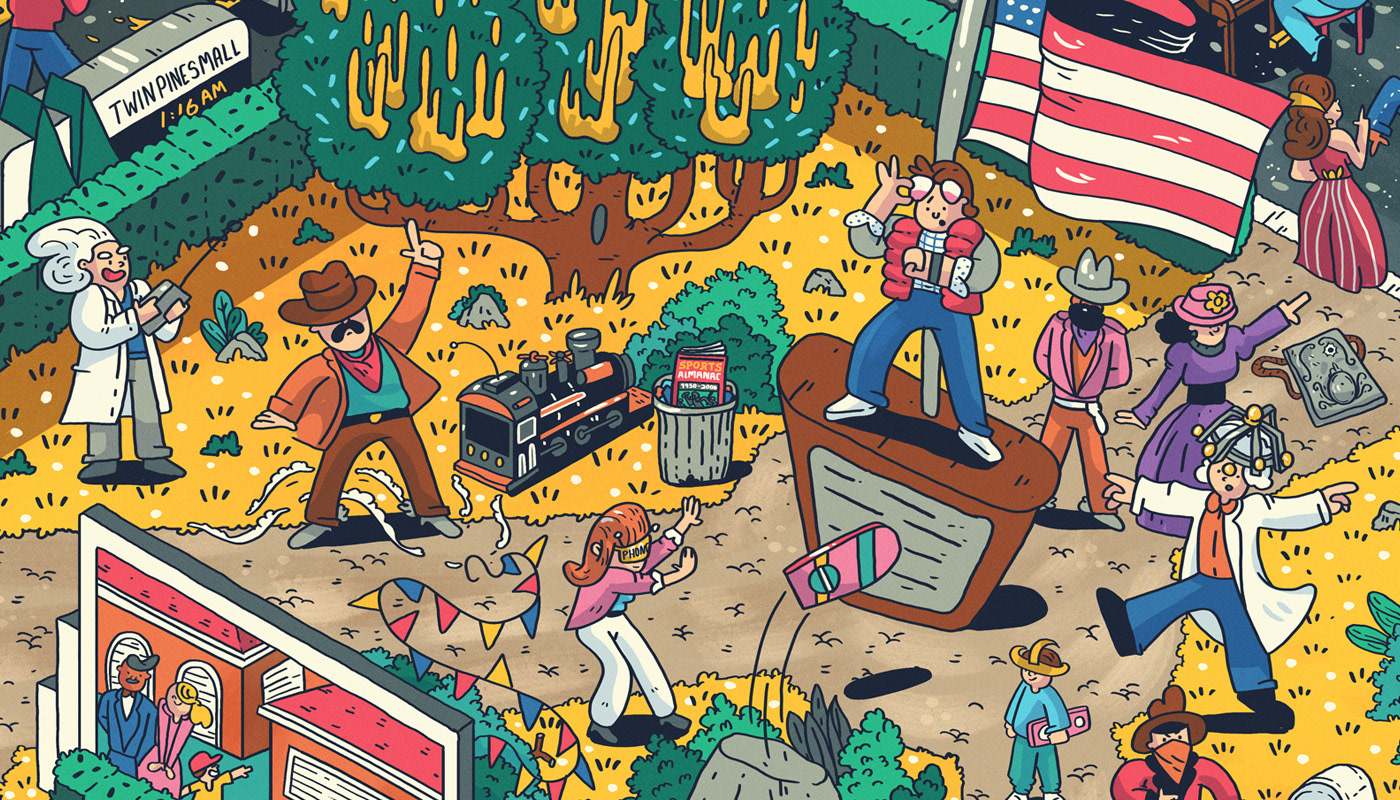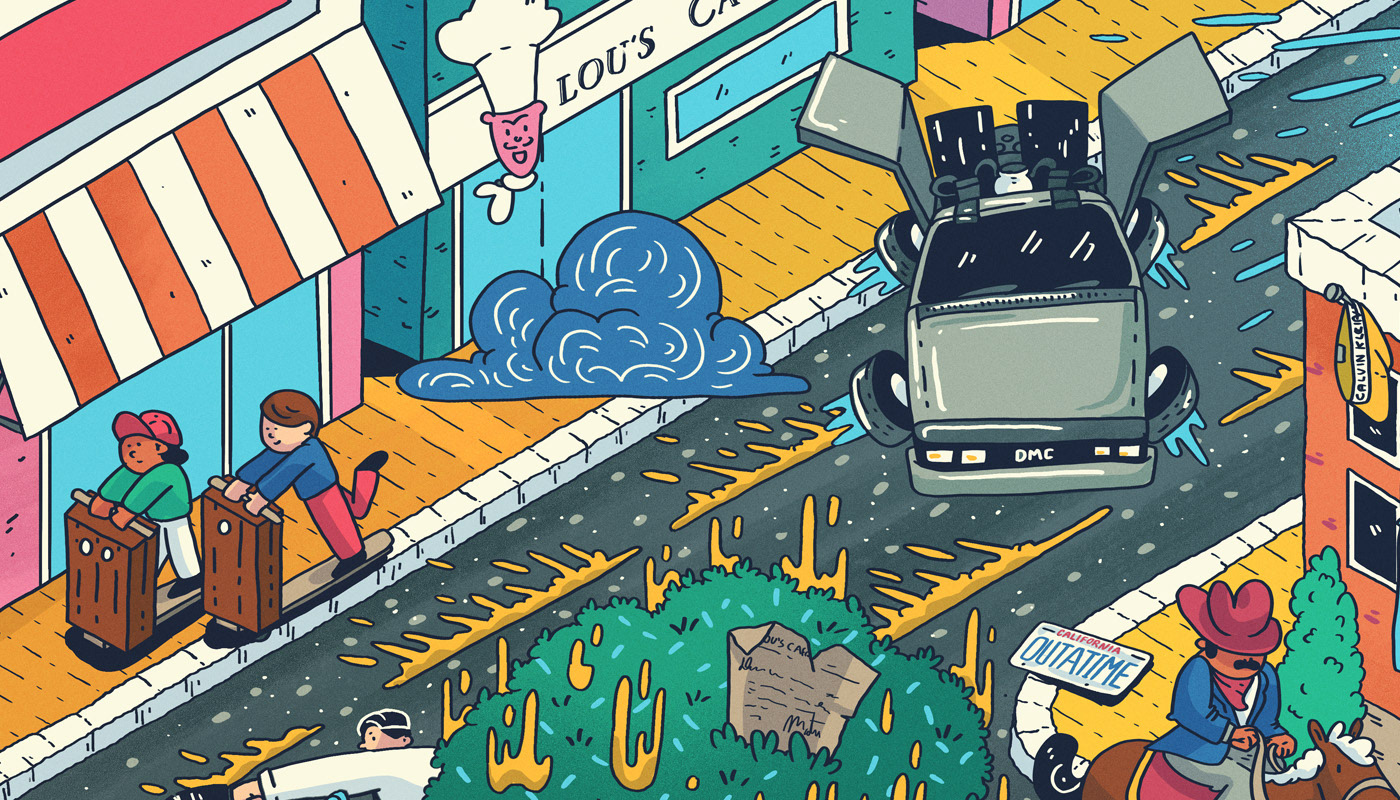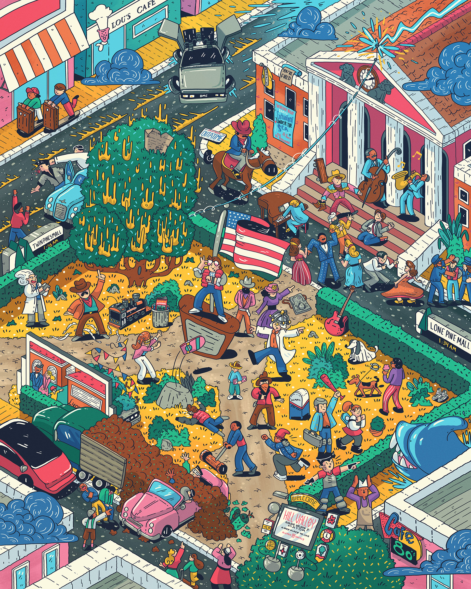 To celebrate the Geek Pride Day, Universal and Sky commissioned us to illustrate the amazing Back to the Future movie. It was pure fun to include the most iconic moments of the 3 movies in one scene. Can you spot all the easter eggs?