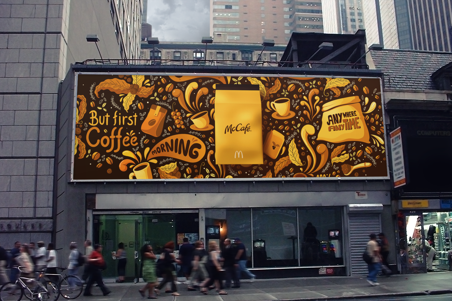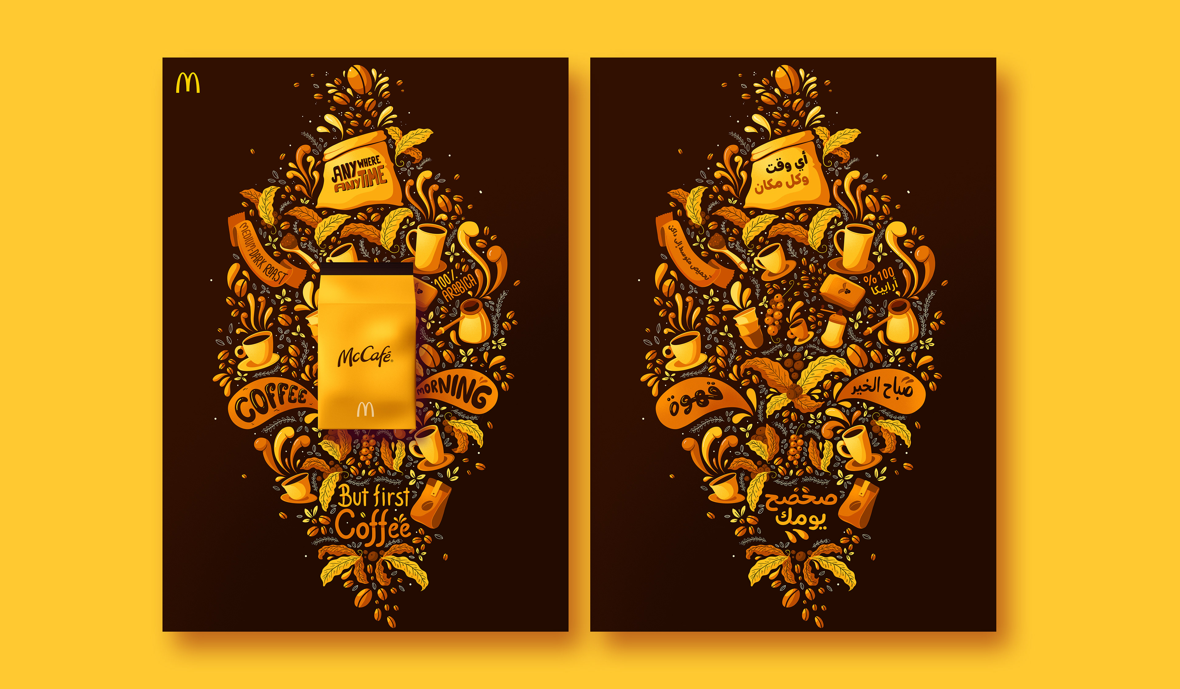 We were commissioned by Leo Burnett and Prodigious to promote the launch of the new McCafe packagin. With a clean and modern look the package was surrounded by the illustrations with an explosion of aromas and graphic elements.