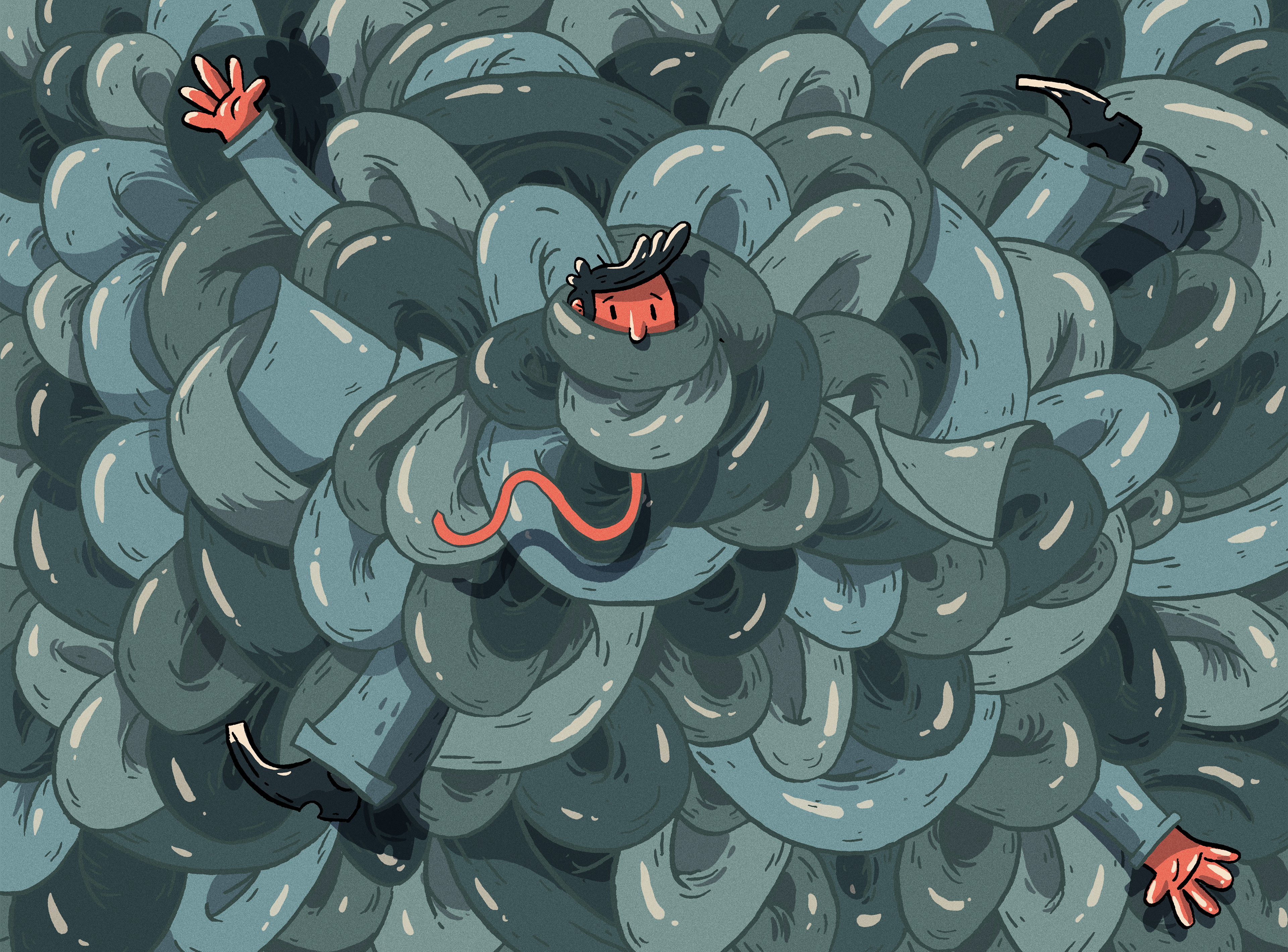 2 illustrations for Você S/A magazine. Interview with Jeffrey Pfeffer, author of "Dying for a Salary". How professionals get sick due to toxic environment and companies not taking care of their health and well being.